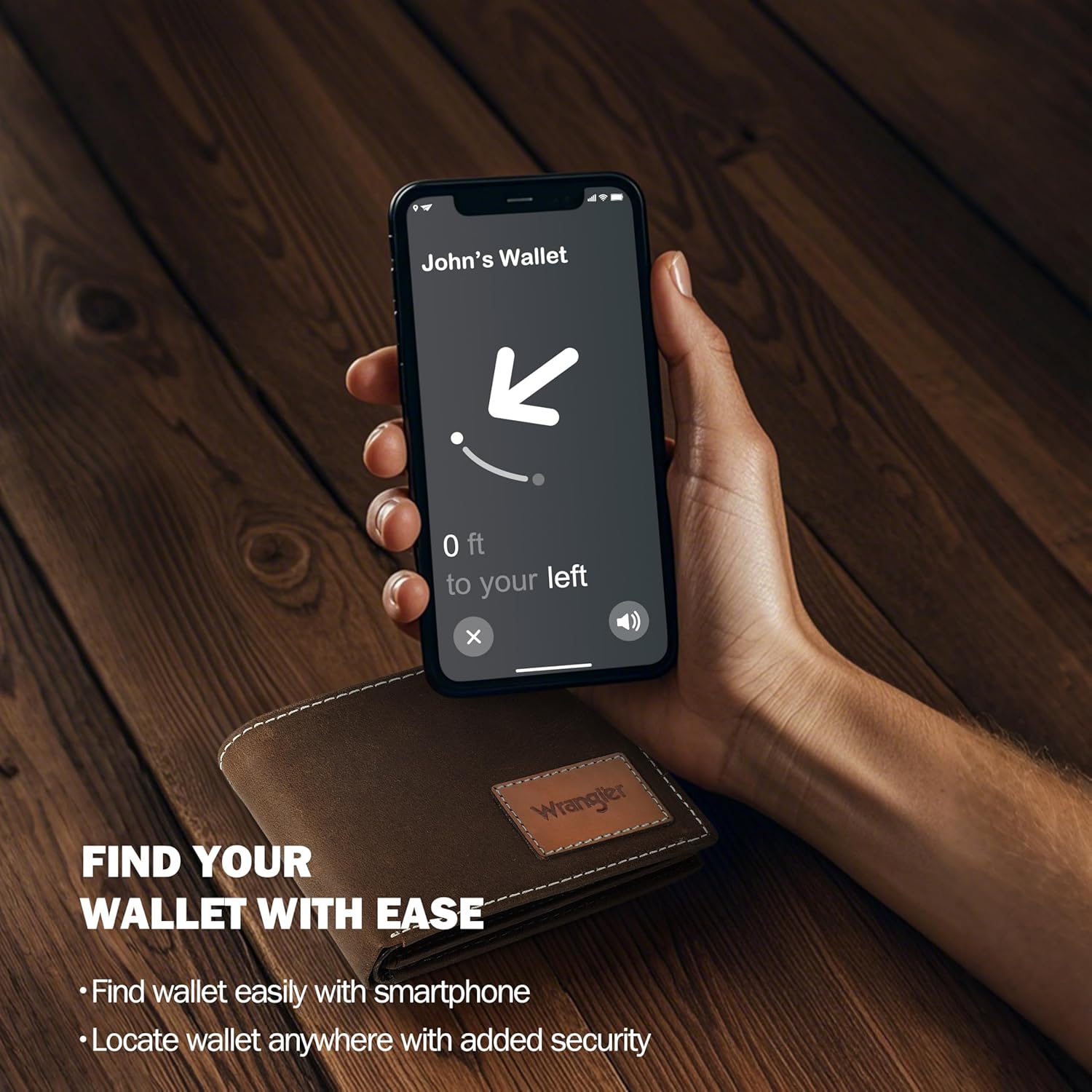 Wrangler Men’s Wallet with AirTag Holder, Bifold RFID Blocking Genuine Leather Wallet