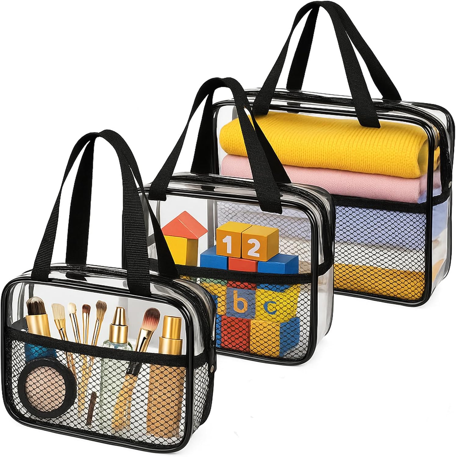 【Clear & TSA Approved for Travel】XEWEA 3 Pack Clear Toiletry Bags are following TSA 3-1-1 rules.and in order to meet the needs of different occasions, we have designed 3 sizes—Large (12 x 9.4 x 3.5 in), Medium (9.8 x 8.3 x 2.8 in), and Small (7.5 x 5.9 x 2.4 in). ❀Therefore, please check the sizes before purchasing to avoid inconvenience. Thanks!❀